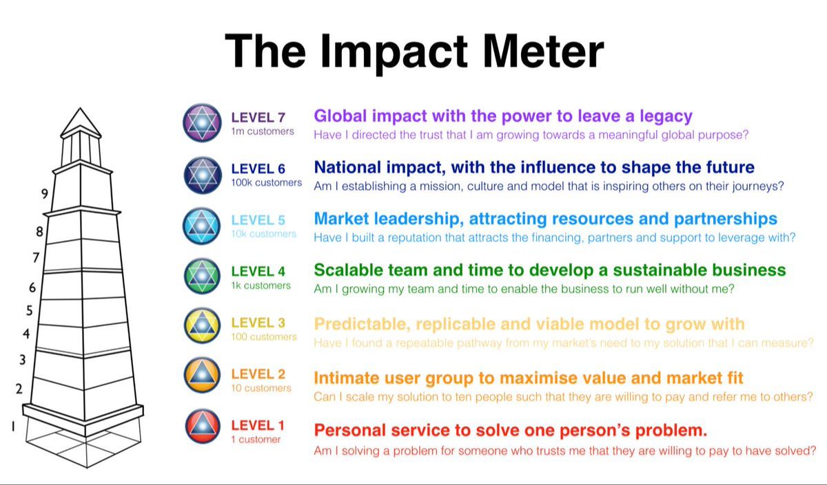 ウェルススペクトルは、個人のフローを扱いますが、インパクトメーターは、ビジネスのフローを扱う理論です。インパクトメーターを知ることで、より正確にスペクトルレベルが把握できるようになります。